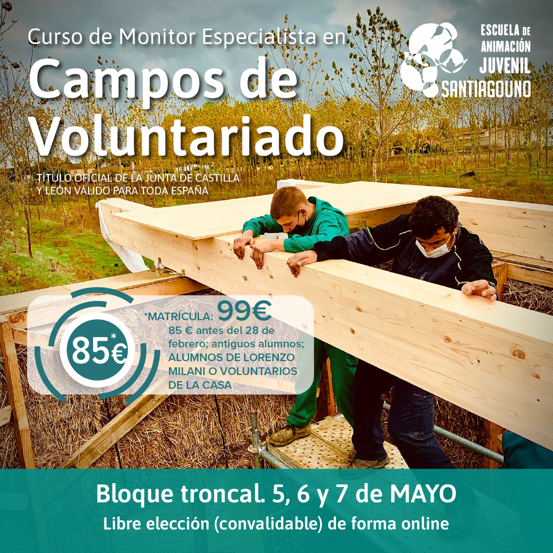 Curso de especialidad en CAMPOS DE VOLUNTARIADO para monitores/as y coordinadores/as de tiempo libre. En mayo de 2023 en Salamanca.